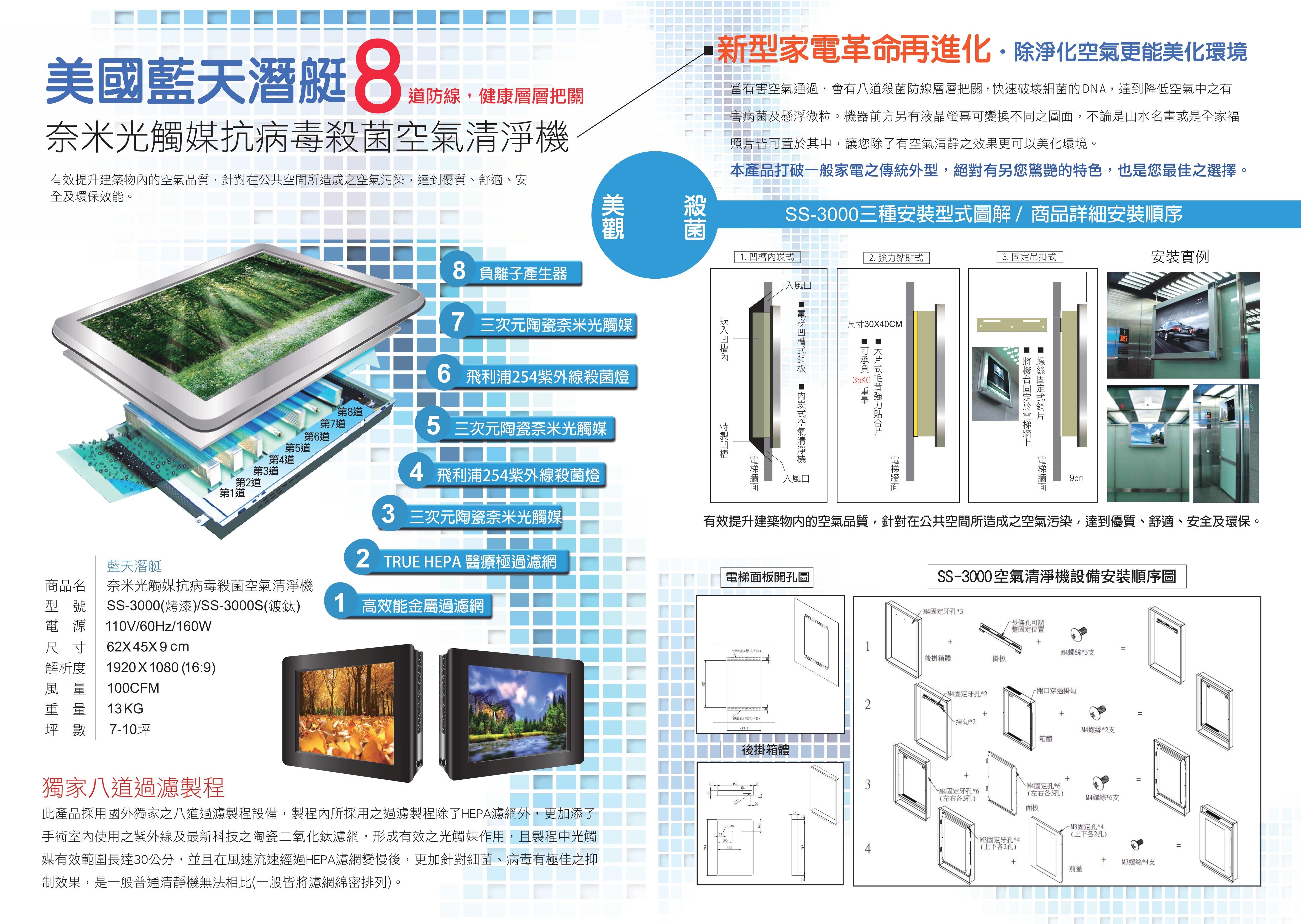 奈米光觸媒抗病毒殺菌空氣清淨機
