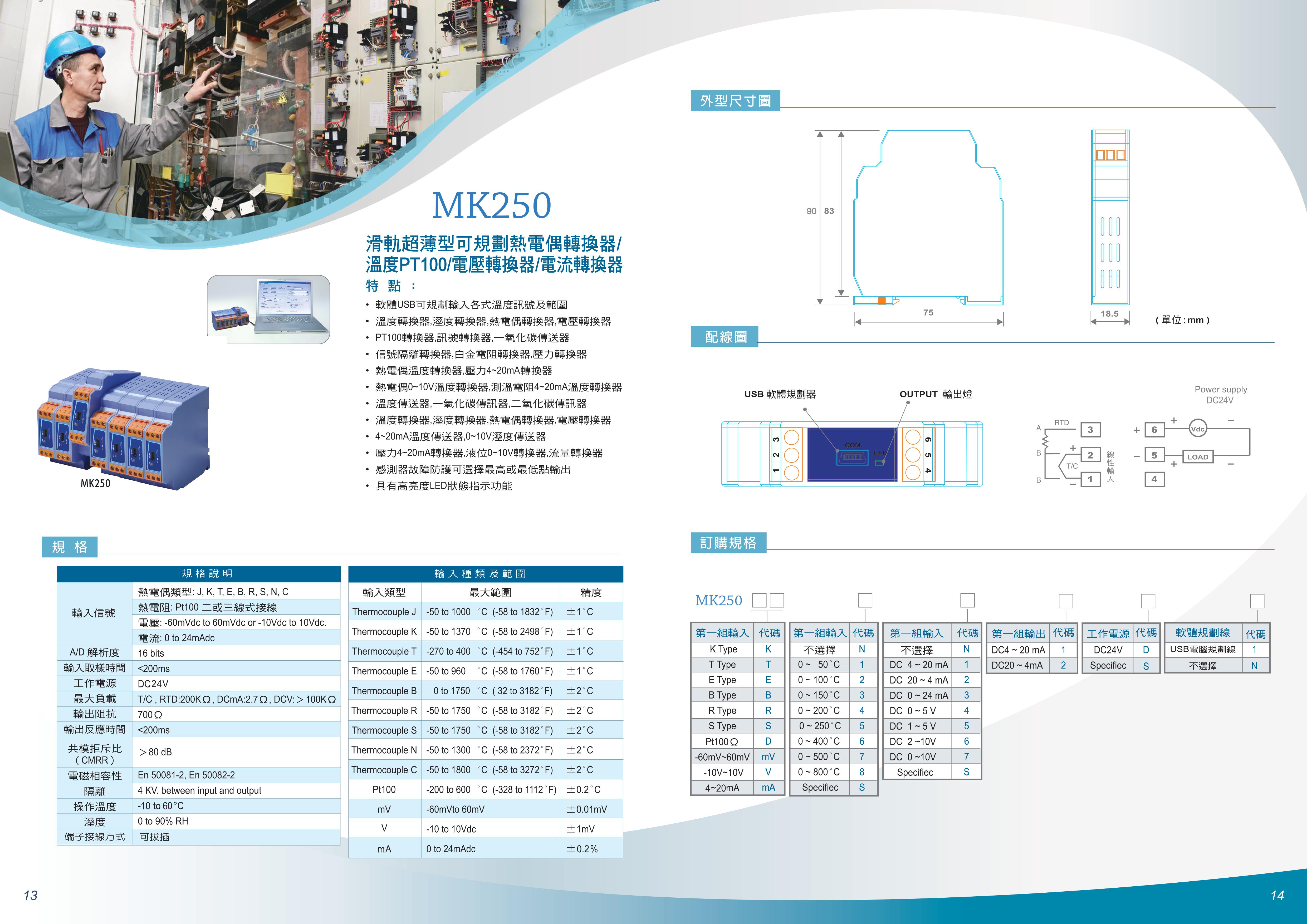 MK250 (一進一出) 複合式表面溫度計/熱電偶轉換器/電壓傳送/電流傳送