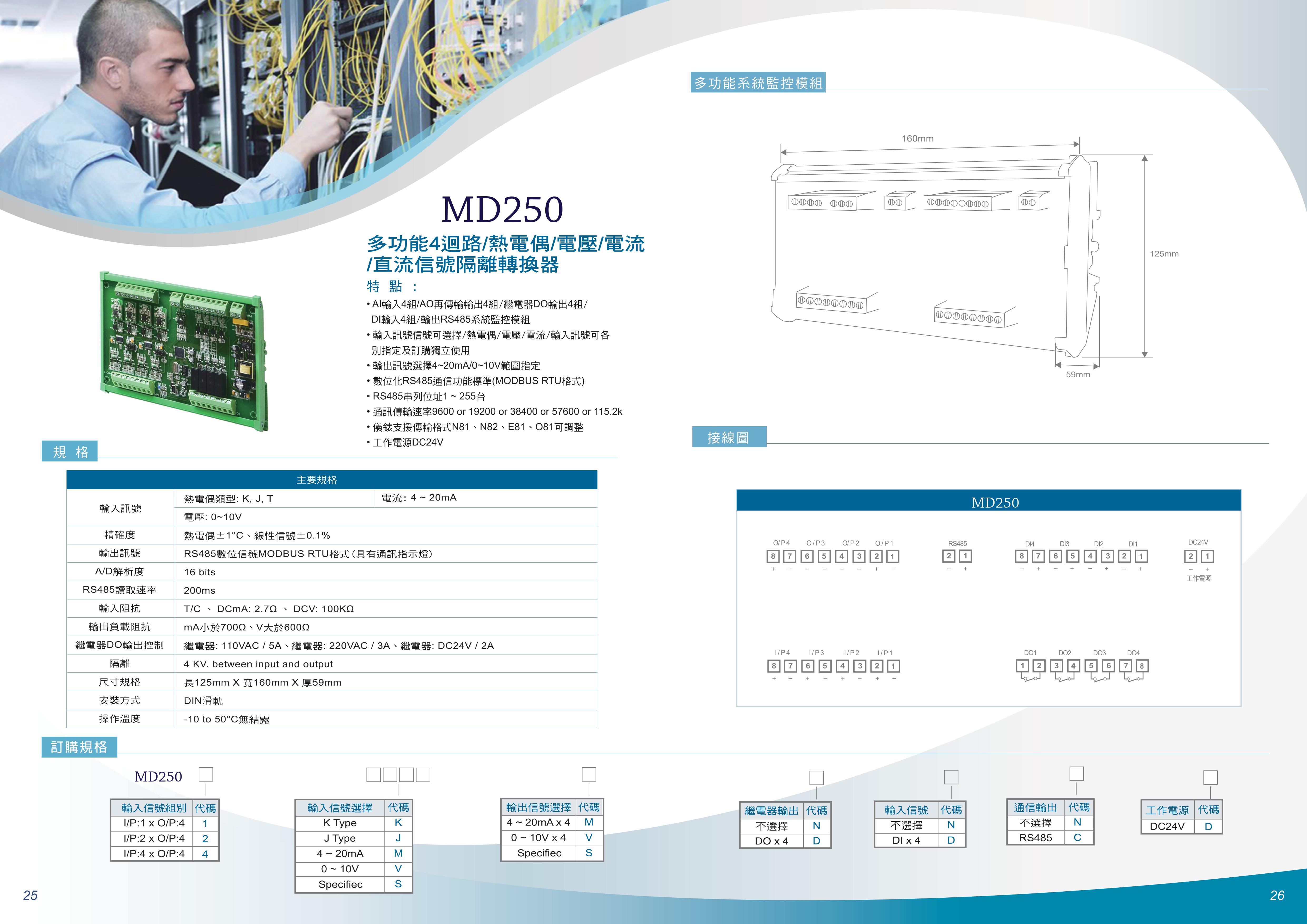 MD250 多功能4迴路/熱電偶/電壓/電流/直流信號隔離轉換器