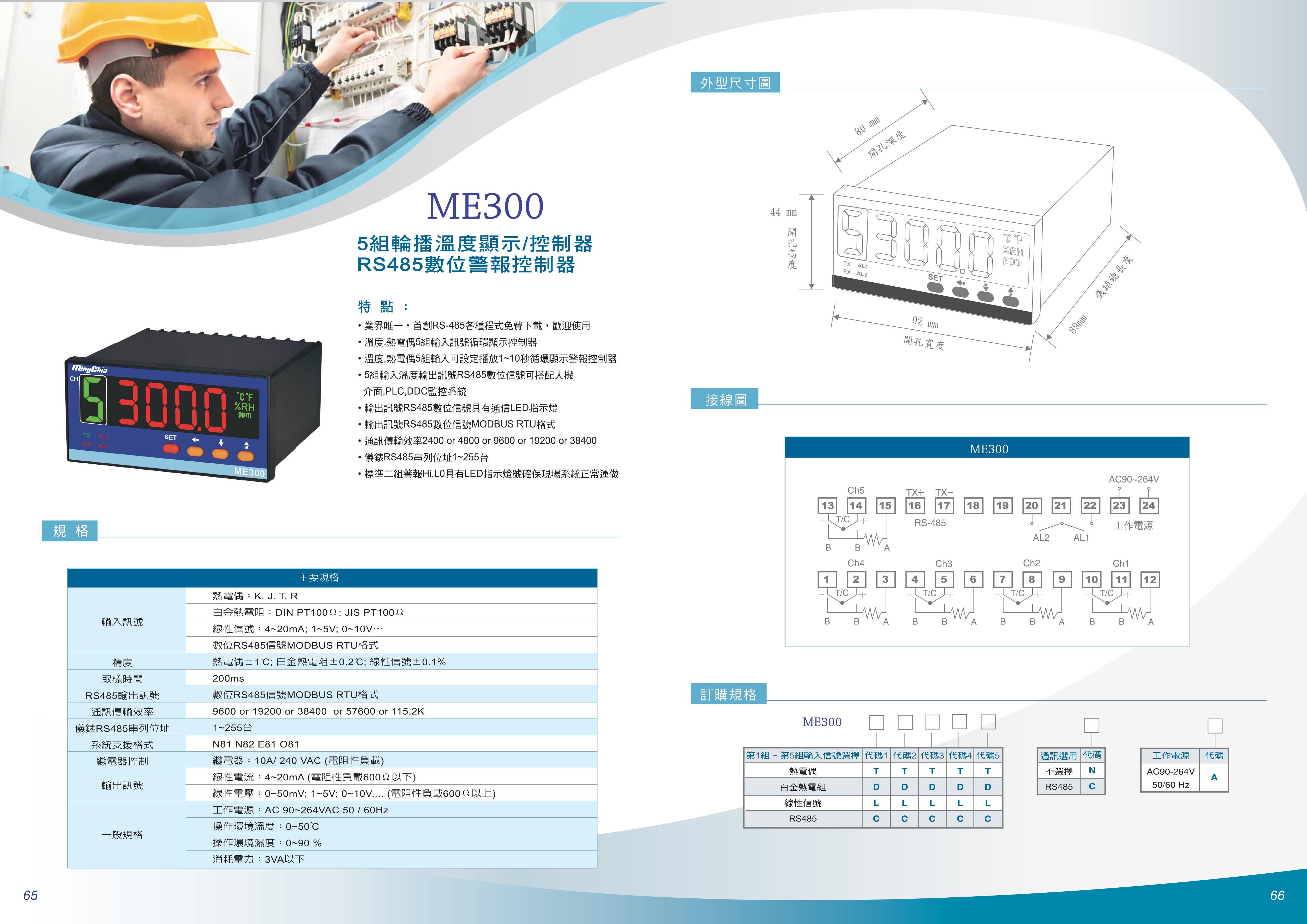 ME300 5迴路循環顯示器/PT100/熱電偶/電壓/電流/RS485警報控制器