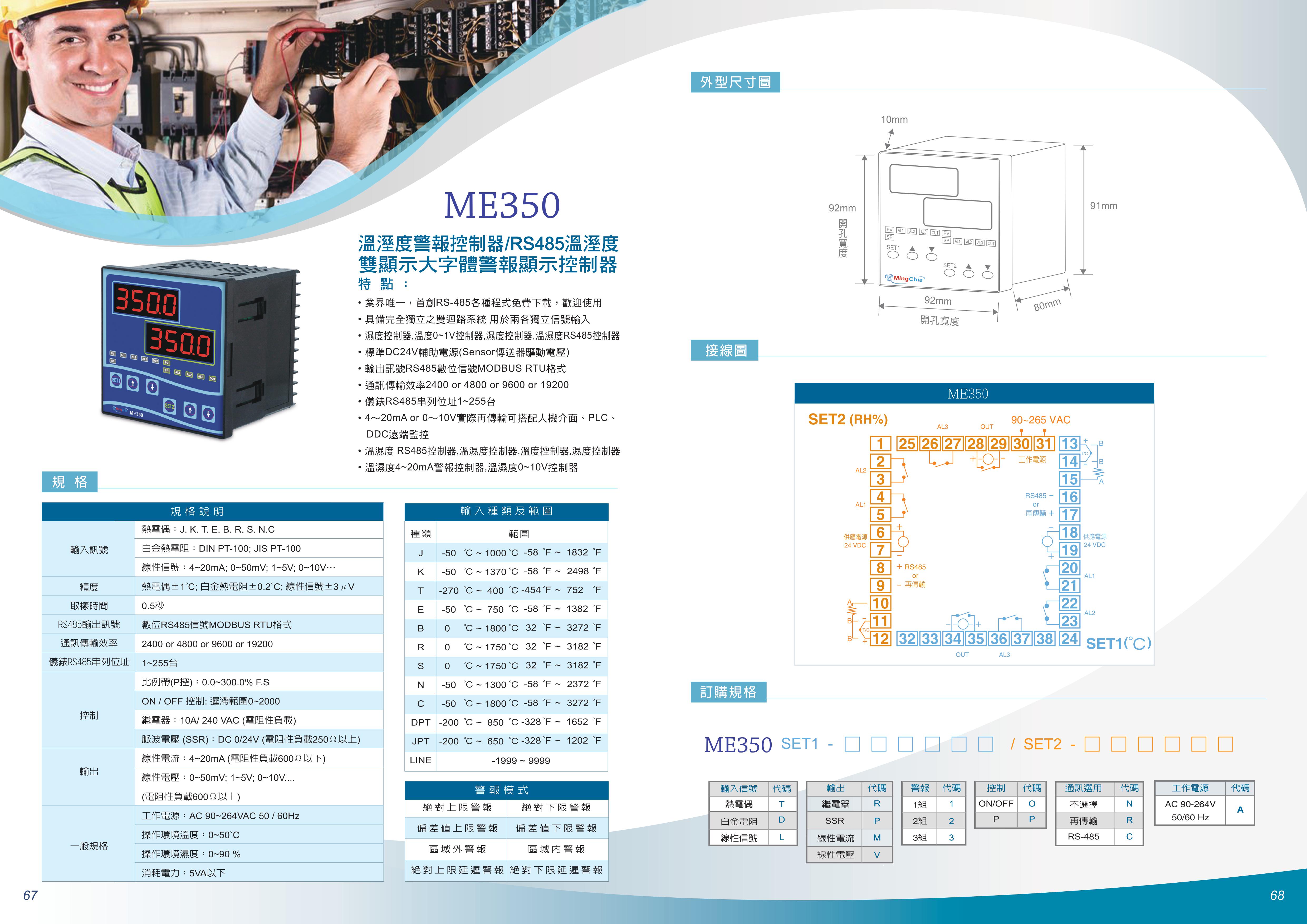 ME350 溫濕度/溫度/濕度/液位/壓力/電壓/電流/熱電偶/二氧化碳雙顯示大字體警報控制器/獨立雙迴路系統