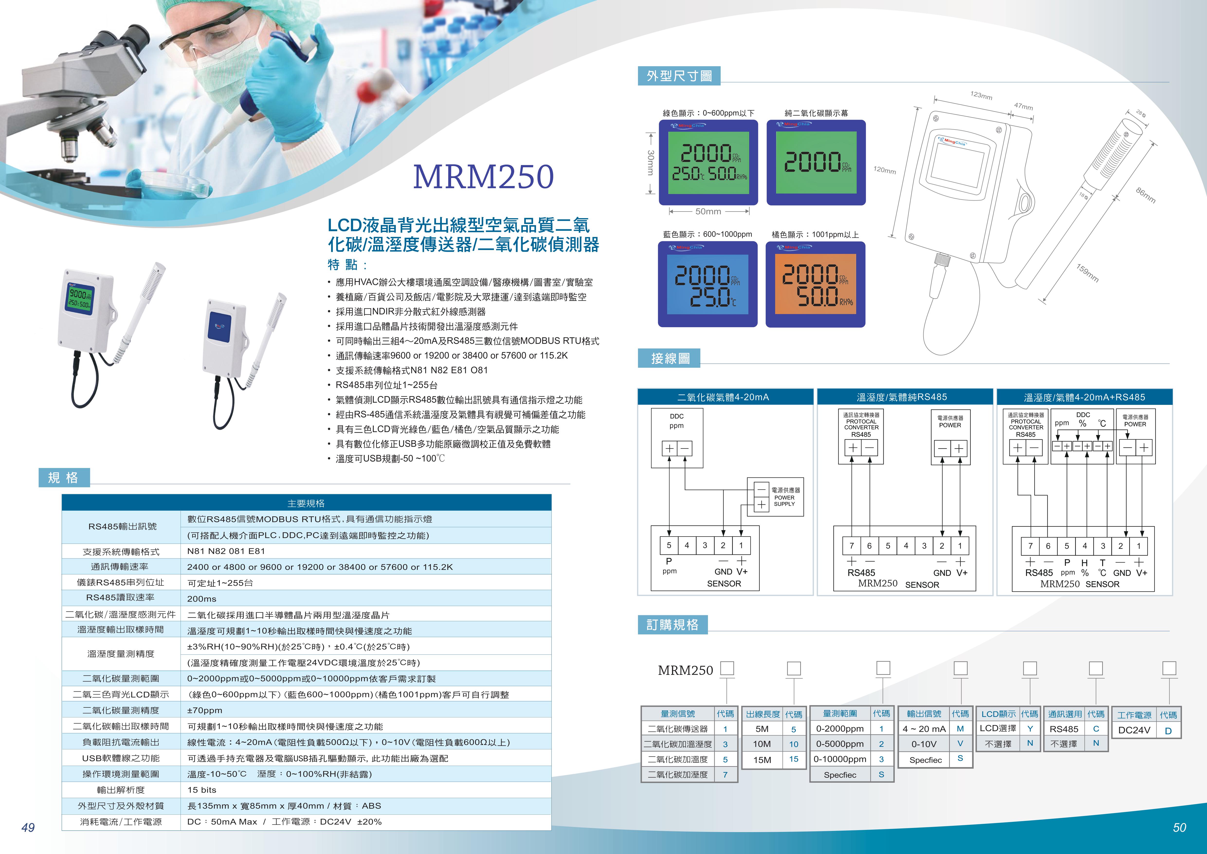 MRM250 出線型溫濕度傳送器+CO2