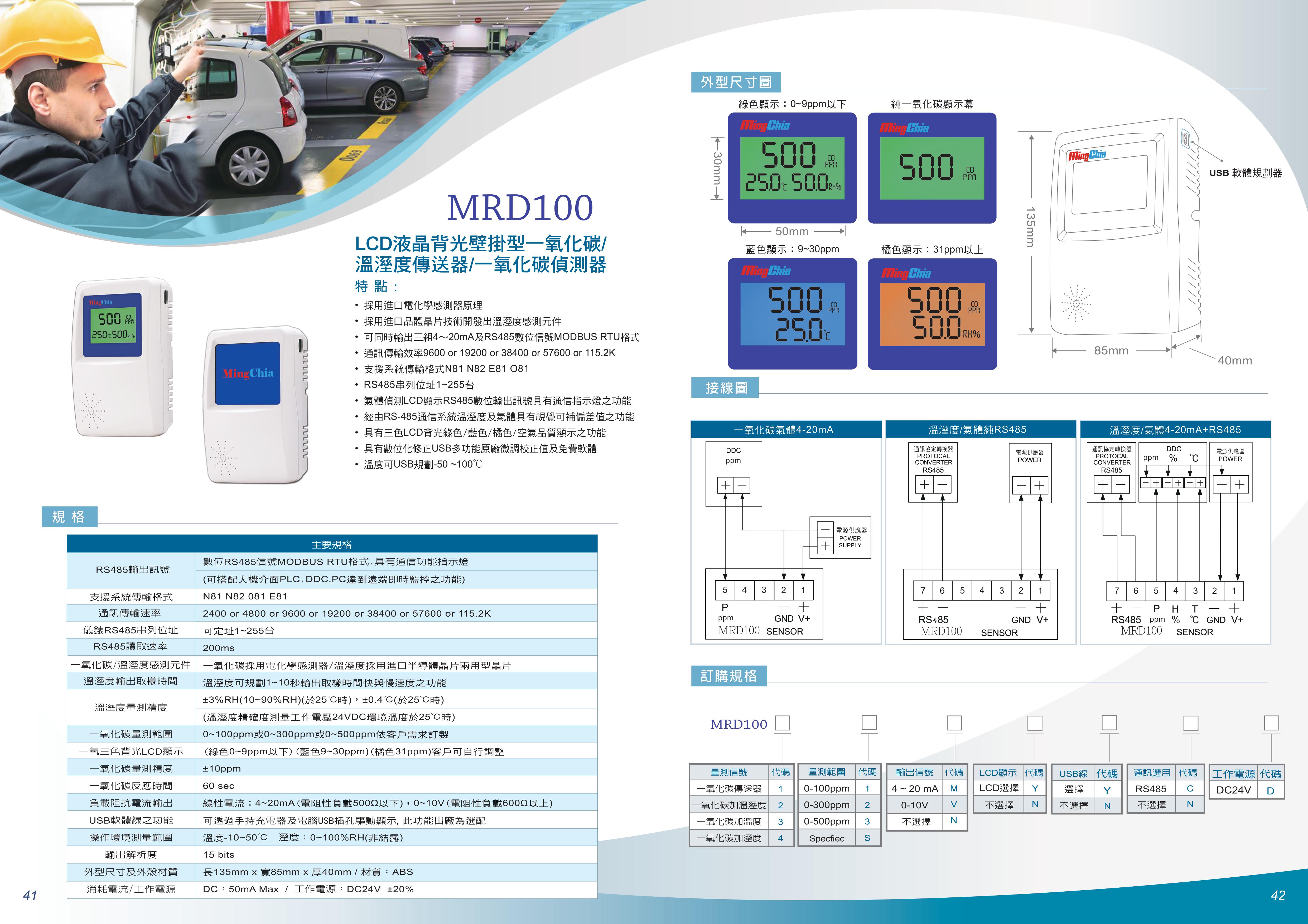 MRD100 室內壁掛型溫濕度傳送器+CO