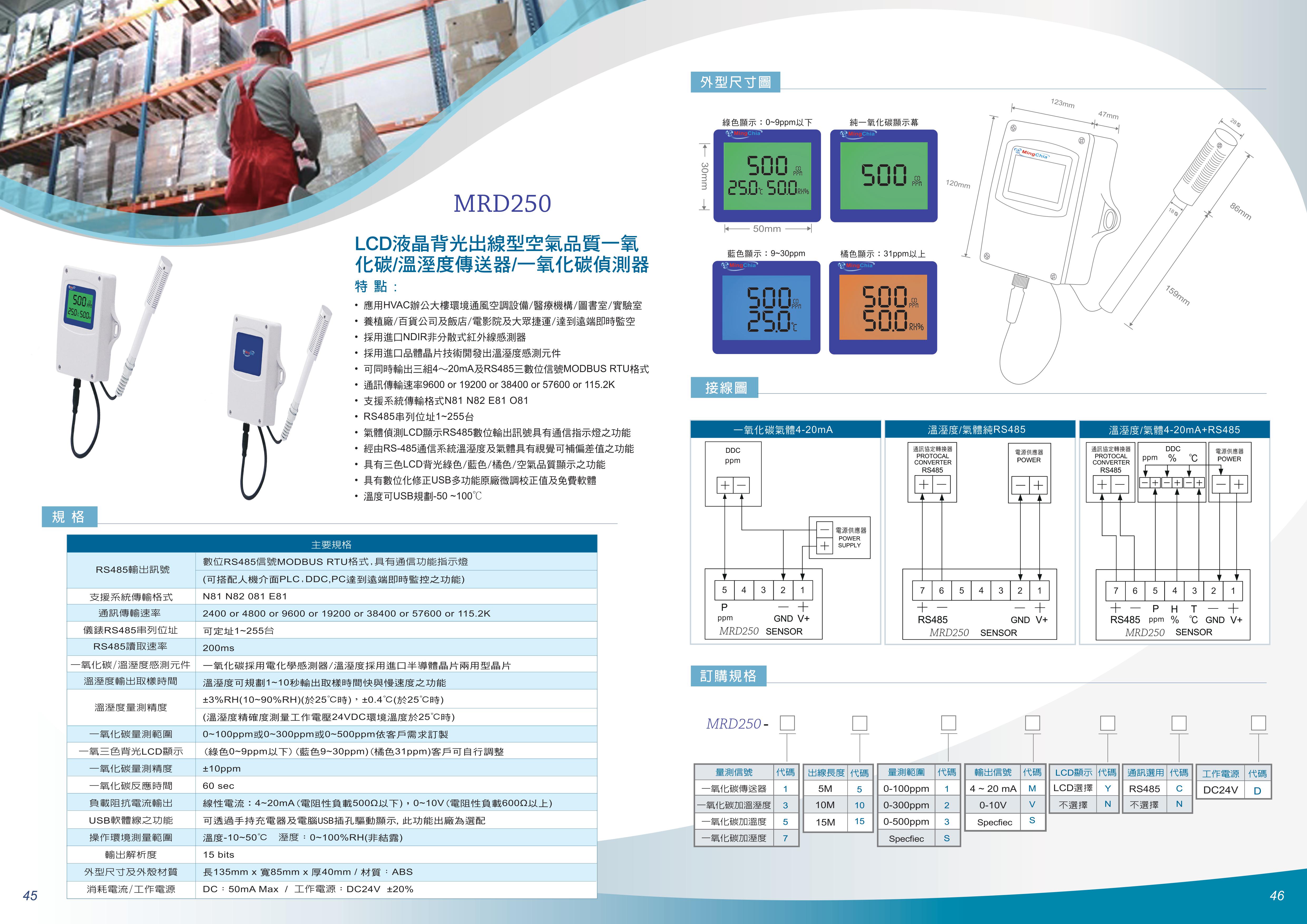 MRD250 出線型溫濕度傳送器+CO